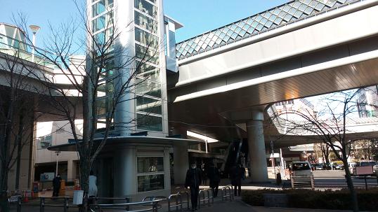 デッキ右側にエスカレーターとエレベーターがあります。