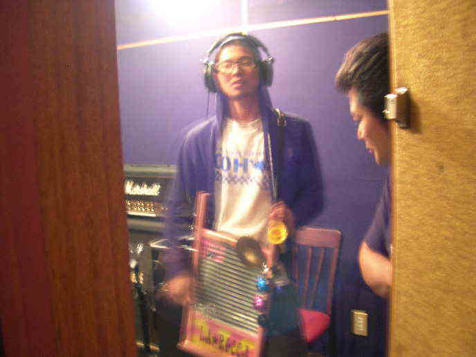 自分の録りが終わっても掛け付けてメンバーを見守るK-1.。 |