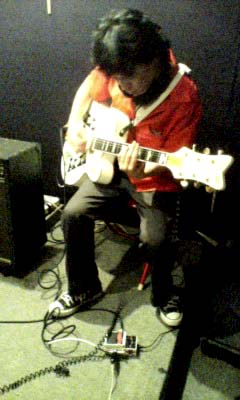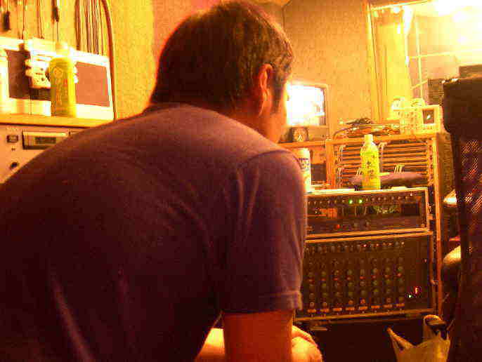 あっさりと録りを終え,録音中のメンバーの音をチェック中のKUMA56→ |