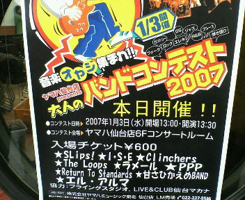 YAMAHA仙台店で1月3日に「大人のバンドコンテスト」というイベントを主催するという情報を入手していた。