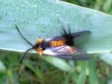 [37]キバラケンモン 後翅が黄色い白黒の蛾。 |