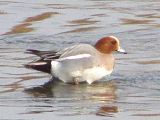 [7]ヒドリガモ 水面にいる頭がクリーム色 のカモ。雌は茶色。 |