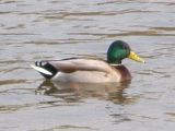 [5]マガモ 水面にいる頭が緑の カモ。雌は茶色。 |