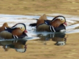 [4]オシドリ 湖畔に休んでいるきれいな カモ。雌は地味。 |