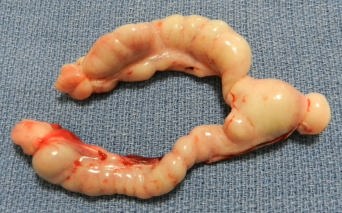 手術により摘出した卵巣・子宮。