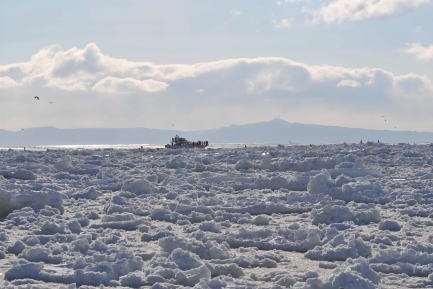 している。前方の山並は北方領土国後島。