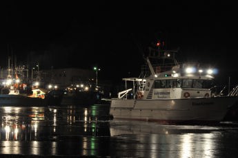 早朝5時、凍てつく寒さの夜も明けない港が、漁に出る漁船のエンジン音と灯りで急に活気づき始める。