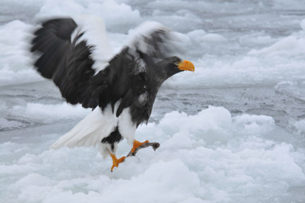 カジカを左足で捕まえる瞬間(オジロワシ)