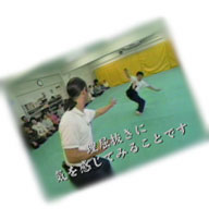 気の交流のワンシーンです。 気エネルギーを実感することにより、 形(かたち)に束縛された窮屈な型 から解放されます。 空間を感じ、楽しめてこそ自由自在 となります。 |