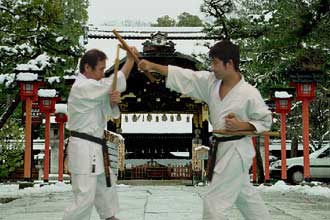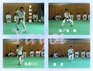 ヌンチャクは初段の審査課目に入っています。ヌンチャク型『流燕・RYUEN』は武澤創作によるもので、この型を稽古することでヌンチャクの基本振り一通りがマスターできます。