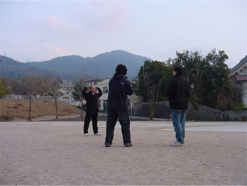 空気が乾いてとても寒い日でした。近くの寺迫公園での独り稽古を撮影。 |