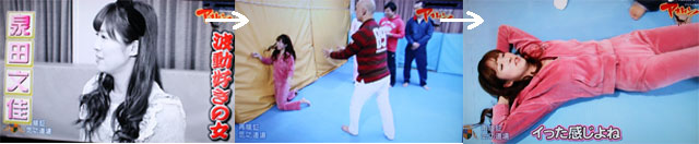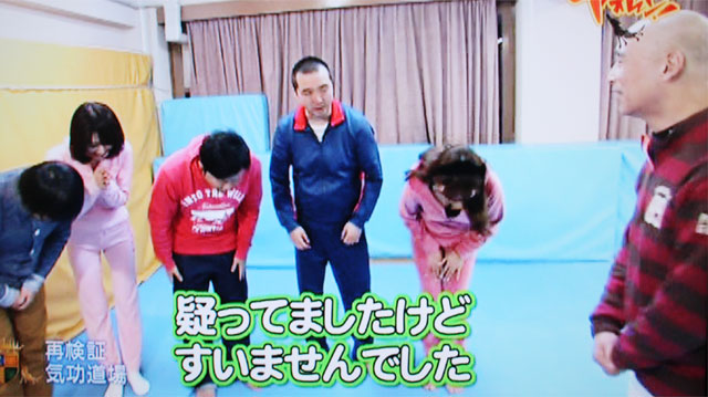 2014年02月13日 前回のフリータイムの取材が凄すぎてどうしても信じられない! ならば自分達が実際に体験して検証してみる!とのことで、 ボールボーイのお二人と美女二人、 そして飛び入りのADさんが 気功体験されました。 テレビ放映は2014年03月14日の深夜、 さて、どんなことになるやらお楽しみに・・・ |