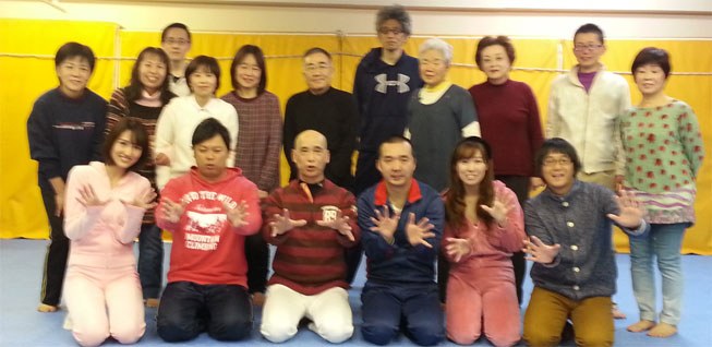国狭ディレクターは真剣に気功の稽古に取り組まれました。 |