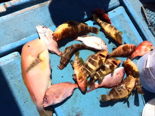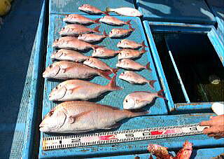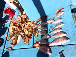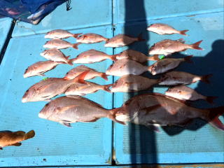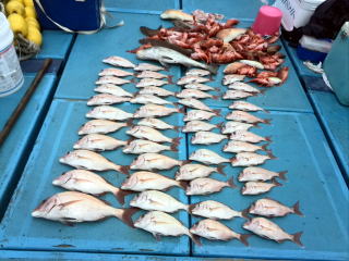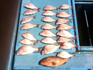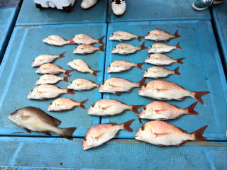 | 真鯛中〜小鯛23枚、コショウダイ1枚、他ガラカブ、アオナ等 |