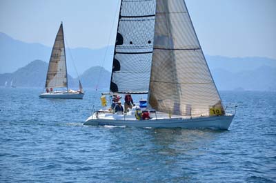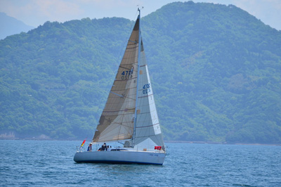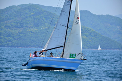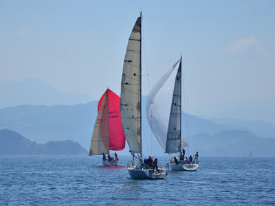 レース当日朝は風がありません。 10:00。出場50艇が一斉にスタート。 しばらくして艇団はばらけていき、高松の「じゃっど」(YAMAHA30SU)が良い走りをしています。 やはり、「SAMMY」(YAMAHA33S)の走りは今年もすばらしい。 「ホワイトホーク」は「コーラルリーフ」(IMX-38)、「ラグランブルー」(X-37S)の後を追いますが、当然のことながらじわりじわりと離されていきます。 タックしするたびに宿敵「シェンロン」(ジャノー35OD)と何度もミーティングしました。 さあ、続いて第2グループ。 ショートハンドの「小春」が少し遅れましたが、先頭「SAMMY」を「ラグランブルー」と「コーラルリーフ」が激しく追って最終レグへ。 我々「ホワイトホーク」も、「シェンロン」と「じゃっど」を振り切って5着でフィニッシュしました。 総合成績は優勝「じゃっど」、準優勝「コーラルリーフ」、3位「小春」という順位になりました。