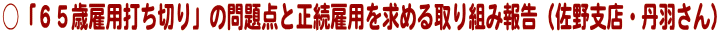 高齢者の雇用をどうするのかの重要な社会的問題でもあり、雇用継続に向け闘い続けていきたい。