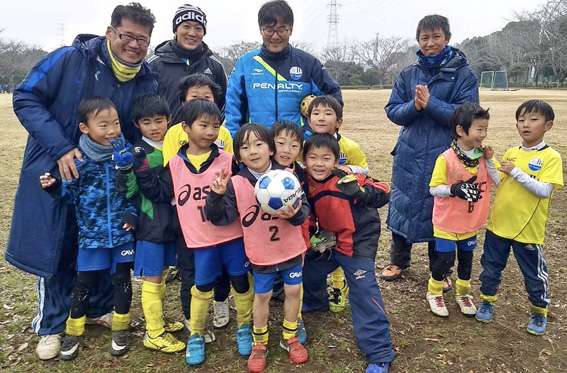 元Jリーガーの中島崇典氏を招いて一緒に練習。子どもたちには