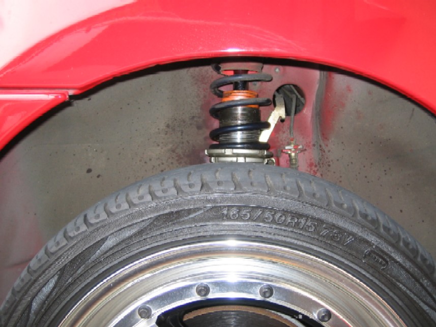 しかし、悔しいのですかさずリアフェンダーの爪折を業者にやってもらい、車高調をオーダーし、再度IKENOYAへ!車高調とリアラテラルロッドを装着してもらい、ついでに干渉するリアバンパーも加工してもらいました!今度は4輪車高調なので微調整がきくのでセッティングも自在♪バッチシです!ありがと>おじゅ専務!これからも無理言うけど宜しく!実はちょっとリアハミタイなんでキャンバーキット欲すぃ〜w Oct・2002