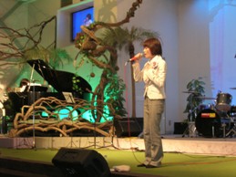 すがちゃん(写真にマウスをあわせると拡大します)は、バラード曲とアップテンポの曲を演奏。特にバラード曲はヴォーカル3人 + ピアノ1人という編成で、ただでさえ目立つという条件の中、見事に弾きこなしていました。ヴォーカル3人さんも原曲とは違った感じになっていて良かったなあ。