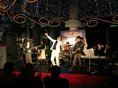 フェスティバルモールの大きなクリスマスツリー下でライブを行い、一足お先にクリスマス気分を味わいました!
