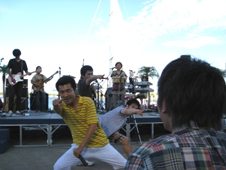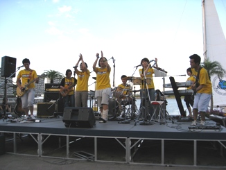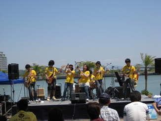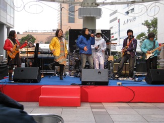 ライブ会場はザザシティ中央広場で、MMRは「やらまいかミュージックフェスティバル」の時にも演奏した会場です。
