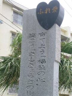 黒御影のハートマークに金文字の「ふれ愛」。なんというハイセンスなモニュメントでしょう。