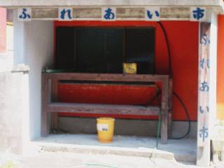 で、この写真は市役所です。今日は職員がいないので、バケツとホースがお留守番です。