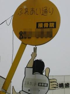 この接骨院のある通りの名前が「ふれあい通り」かどうかは確認していません。 看板の怪しいおじさんの正面から写真を撮れば面白かったかなあと、後で思いました。