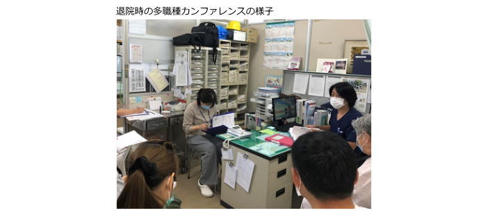 - ③退院時においては、ご本人、ご家族と共に、在宅へ退院されてから実際関わる訪問看護師、介護事業所(通所リハビリテーションや施設など)や担当ケアマネージャーと退院カンファレンスを行い退院後、適切な支援を行える様努めています。
