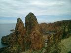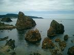 鯵ヶ沢駅から深浦駅までは約一時間、日本海の海岸線を走るが深浦駅に近づくと小島が多くなり又千畳敷の岩があり、その景色は素晴らしいものがある。デジカメのメモリーが足りなくなるか心配になってくる。五能線に入ってから3時間弱かかりやっと艫作駅へ着いた。そこから歩いて行こうと思っていたら、無人駅の駅前に不老ふ死温泉の車がお迎えに来ていた、何人かの人が乗り込んだので運転手さんに聞いたら日帰り温泉の人もOKですよとの事で乗る事にした。