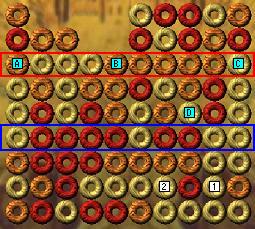 青枠に横L字型が出来てますので、右側から1個ずつスライドさせていけば完成できますが、リングを3個消費します。@のリングを使うと消費するリングは2個で済みます。