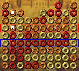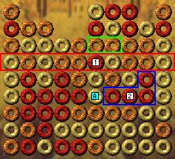 青枠、右から2列目を赤リングにします。上に赤リングがいますので、右から2列目を1段下げます。