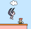 もしジャンプしたときに最上段へ行ってしまったら、ボスの下をくぐって避けるのではなく、ジャンプして上を通るようにしましょう。