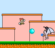 2-4ボスでは、玉の移動速度が少し速めなので、タイミングよくジャンプしましょう。