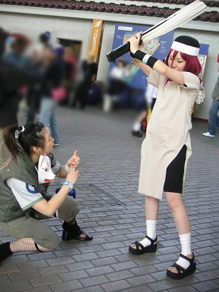 実はおひる食ってるとき、通りすがったオバチャンが「コスプレでしょ」と吐き捨てて去ってゆきました。