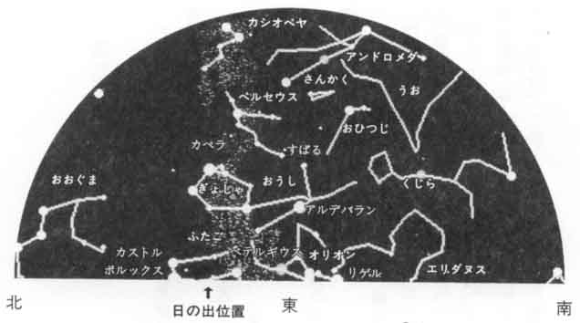 九月初旬の未明(四時半前)の東の星座である(日の出の直前なら、その十日ほど前の五時すぎ)。
