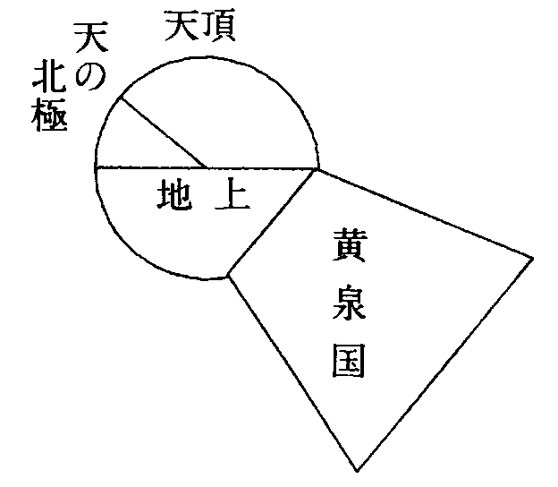 だから、正確に言えば、高天原は天球の上半分ではない。国土の厚みの分(厚みを常世国と二分しているならその半分)だけ上方は水平方向より奥行きがない。われわれも空を見上げれば平たく見えるだろう。