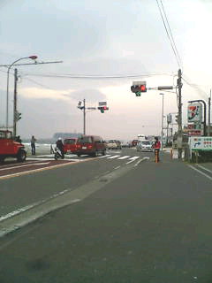 翔とレナ(山田優)と上田(湯江健幸)が、車に乗った冬海(深田恭子)と「コペンハゲ」(金子賢)を目撃した交差点。(2話のラストで登場) 「NORTH SHORE」との位置関係はドラマと同じでした。 ちなみに、赤い車の向こうにうっすら見えるのは「江ノ島」です。 思いっきり海沿いでしかも物凄く風の強い日だったので、サーファーやそれを見に来たギャラリーが多かったなぁ。 |
