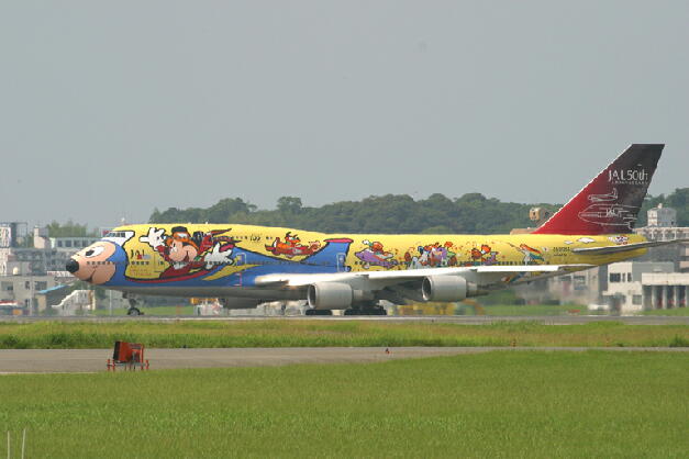 日本航空の会社創立50周年記念の「JALドリーム・エキスプレス」スペシャルペイントの六号機 |