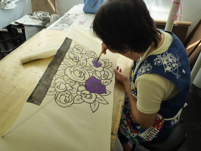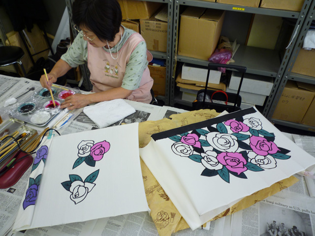 助手Mは、、、自分のストールの絞りを縫い、、、 |