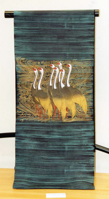 駒々塩瀬に糸目・ローケツ染・手描き・金彩加工と様々な技法を使った名古屋帯