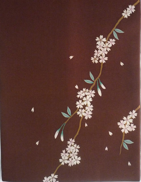 塩瀬に枝垂れ桜を描いた名古屋帯