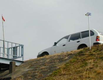 堤防の内側法面にある複数の標識に御注目。 (場所:木曽川左岸堤防) 右上にポール型、左下に四角柱型の標識が見 えます。これって何?