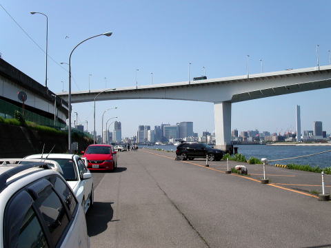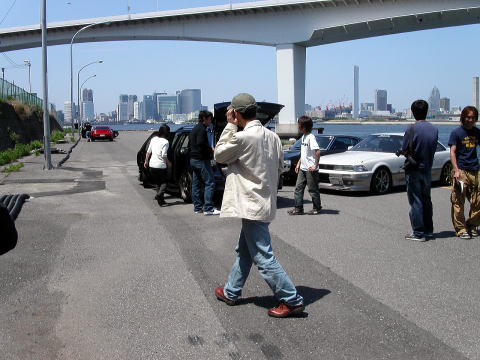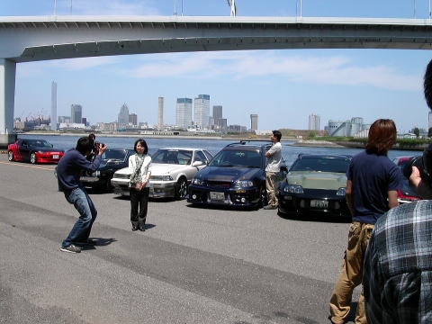 汐留のビル郡をバックに。雑誌には綺麗に載ることでしょう。
