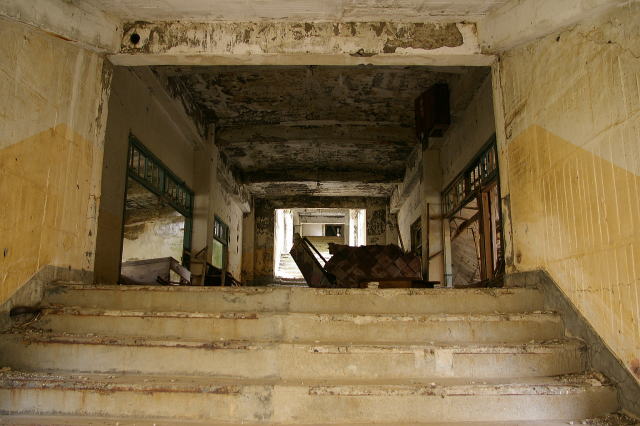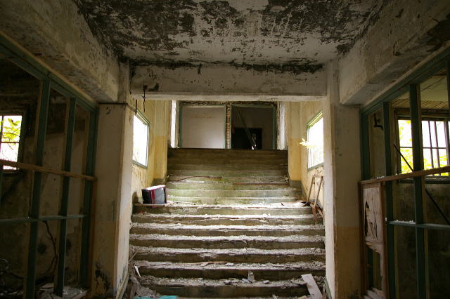 窓枠はすっかり抜け落ち室内にも植物が自生しています。