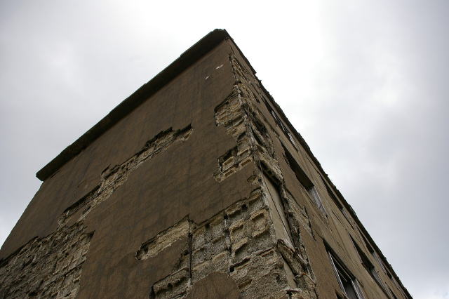 長きにわたる風雪でコンクリートの表面は完全に崩壊しています。
