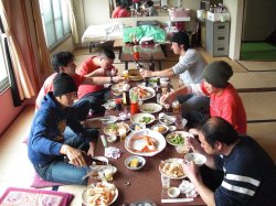→ 本日の宿(松美苑) ウェルカムドリンクで大盛り上がり かに・カニ・蟹です。 |