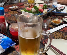 ←本日の宿 鬼怒川観光ホテル ウェルカムドリンクで乾杯 カップ小さいけど、生ビールは最高 |