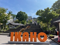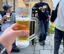 →伊香保温泉の石段(365段) 途中で生ビールで乾杯 |