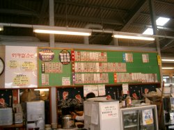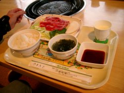 大笹牧場 外はすごい霧! 霧降高原の名前の由来は”霧” 間違いない!! ジンギスカン定食 1,260円 さすが牧場、牛乳付きでした。 |